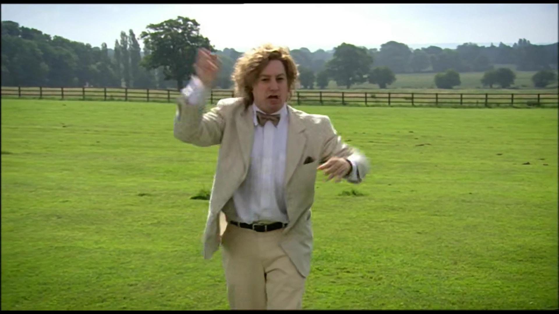 Wavy-Armed Historian Runner: A historian struggles with keeping his arms still while shooting a documentary.